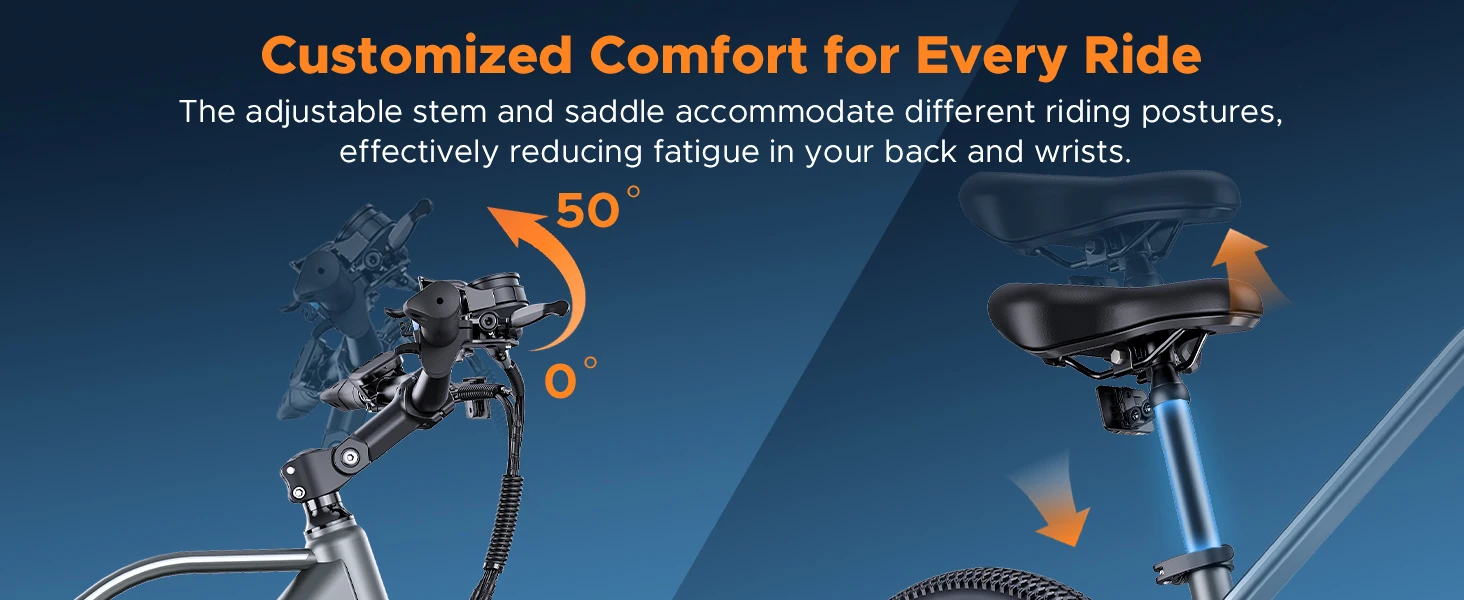 700W Peak Motor – Delivers smooth and efficient power for daily rides and hilly terrain